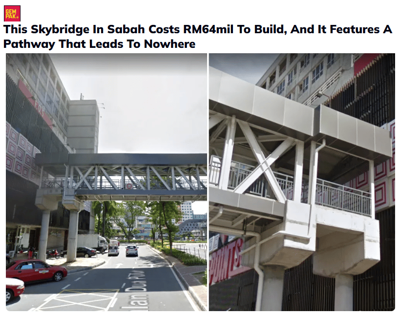 A few years ago, Sabah spent RM64 million to build a skybridge meant to connect key parts of the city.