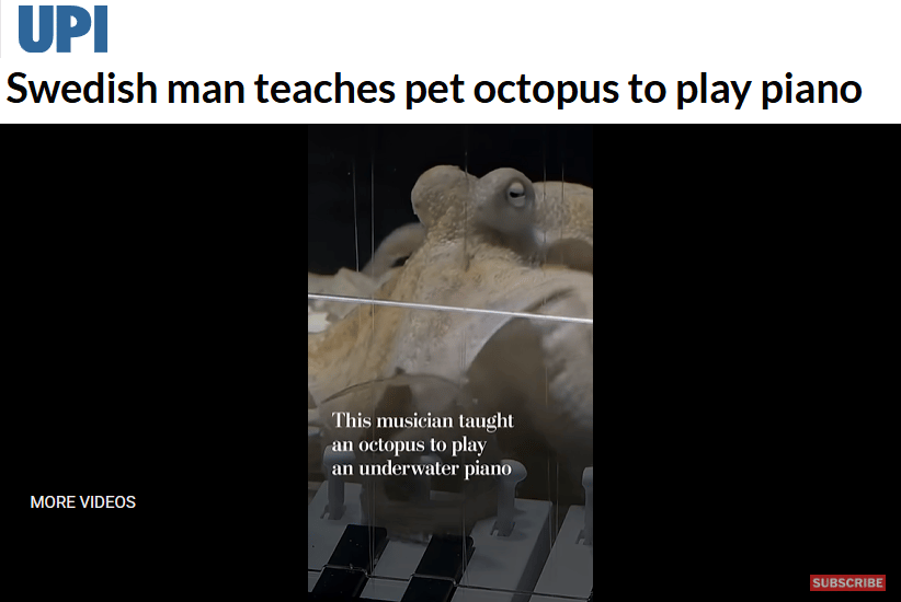 A Swedish musician spent six months patiently training an octopus to press levers that hit piano keys (with rewards involved).
